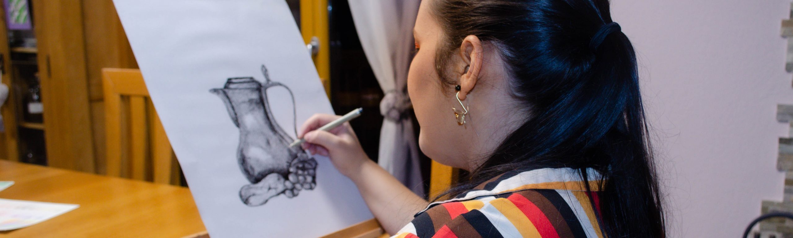 Cours de base : crayon gris, pointe feutre, encre de chine, crayon de couleur, crayon aquarellable, aquarelle, lavis, brou de noix, techniques mélangées.